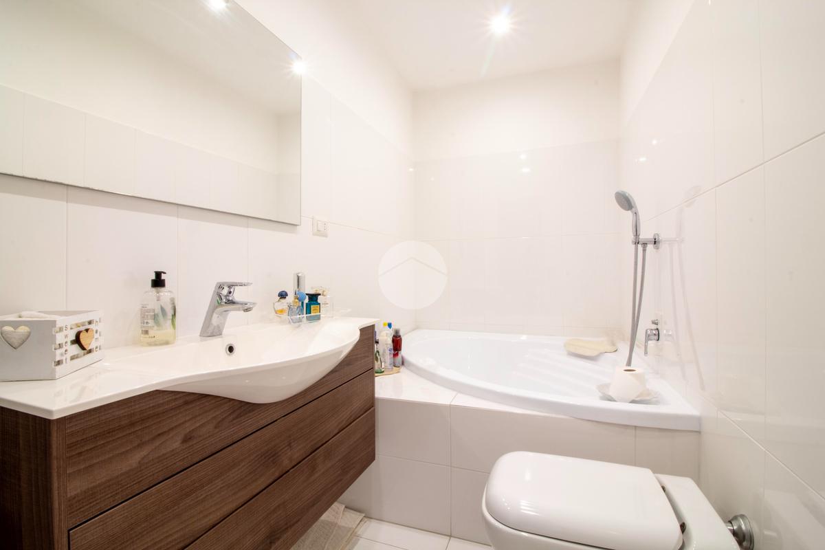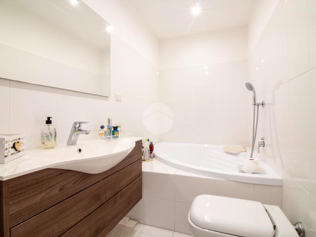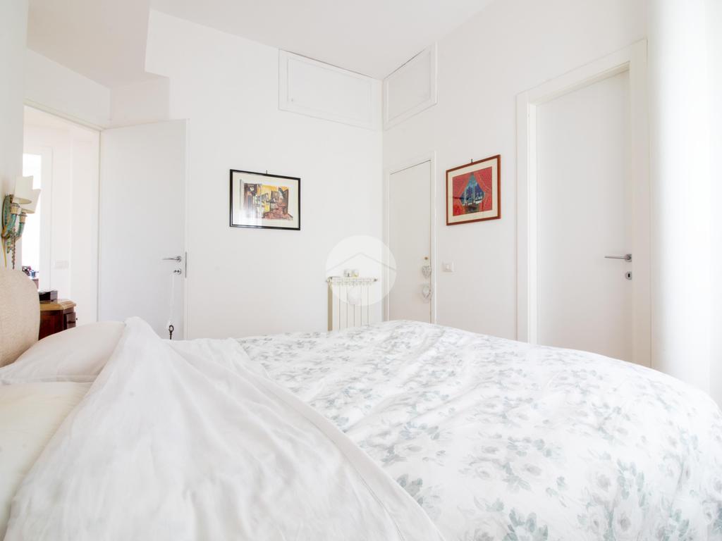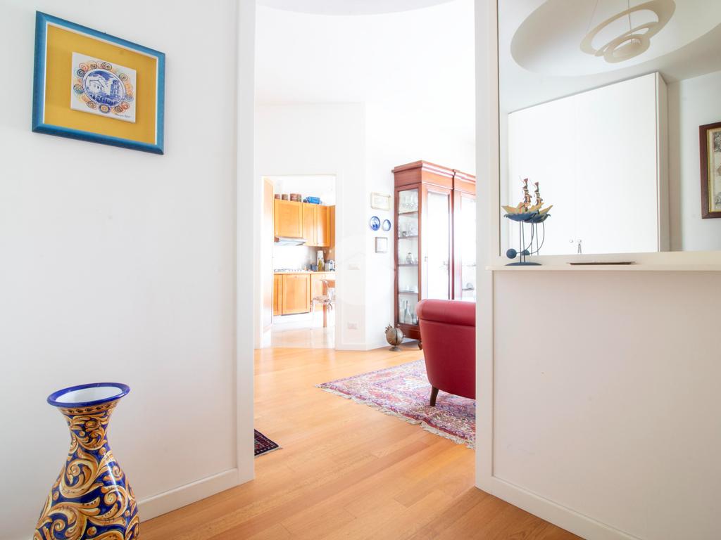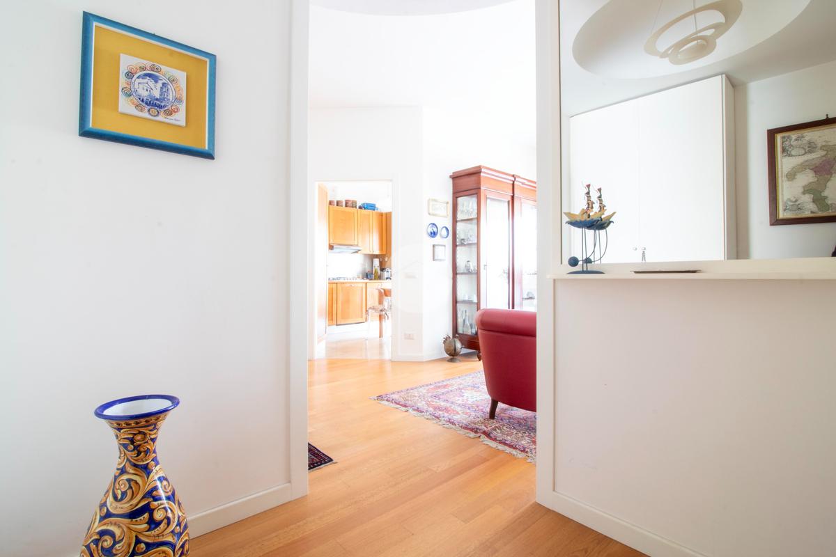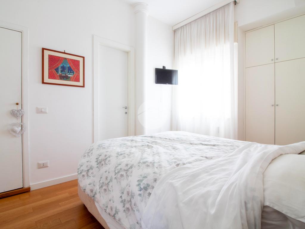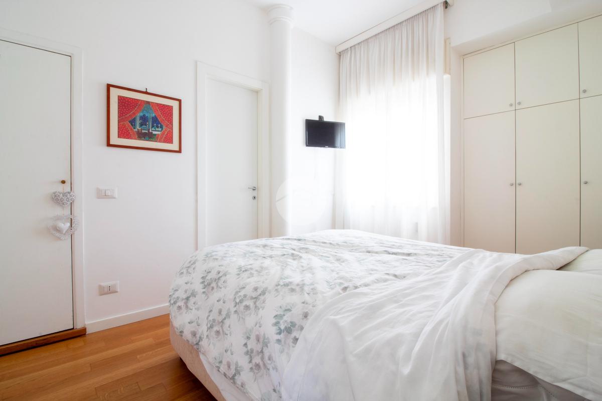Il corridoio guida verso la zona notte come un filo narrante: la suite, con bagno privato e cabina armadio, è un rifugio morbido, un luogo in cui il tempo sembra allungarsi; la seconda camera, luminosa e silenziosa, completa un equilibrio perfetto.